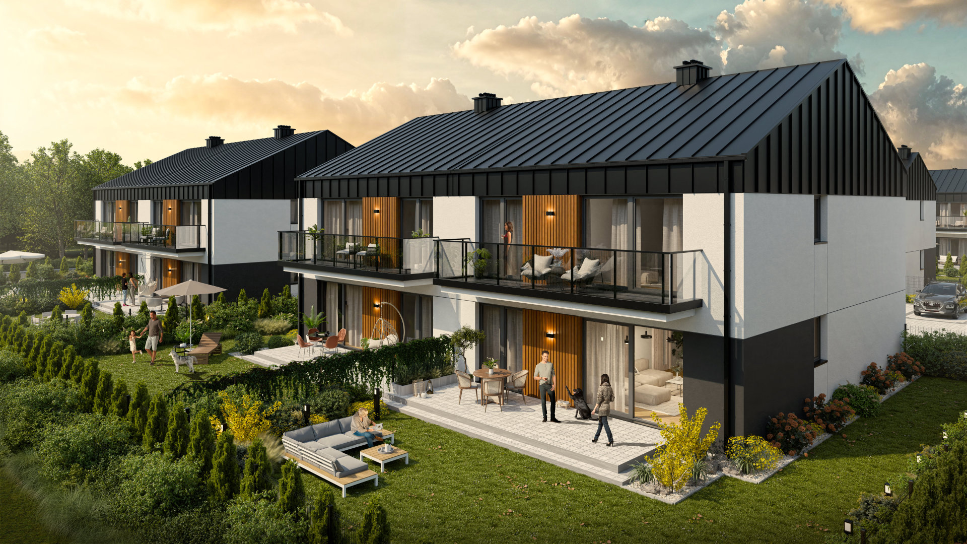 W Binków Park znajdziesz mieszkania, które doskonale odpowiadają różnym potrzebom – od wygodnych apartamentów na parterze z prywatnymi ogródkami i gotowymi tarasami po przestronne lokale na piętrze z balkonami i możliwością adaptacji poddasza. Duże okna zapewniają doskonałe doświetlenie pomieszczeń, a widok na otaczającą zieleń sprzyja relaksowi i odpoczynkowi.